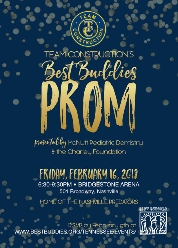 We are happy to announce that Team Construction will be hosting this year’s Best Buddies Prom in Nashville. Best Buddies is a non-profit organization whose goal is to “establish a global volunteer movement that creates opportunities for one-to-one friendships, integrated employment and leadership development for people with intellectual and developmental disabilities (IDD).” This volunteer-based program has been implemented across 48 countries and has impacted well over a million people. To say they’re changing lives would be an enormous understatement. With our hearts so deeply rooted in philanthropy here at Team Construction, we are beyond thrilled to be a part of this movement.